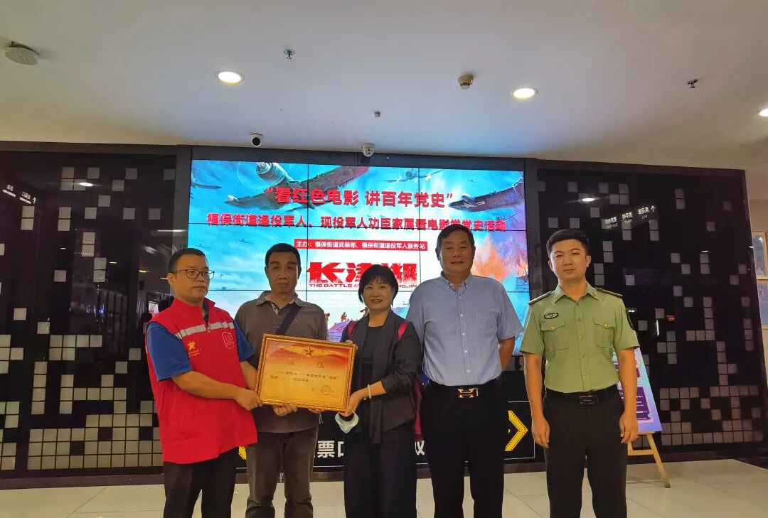 为进一步推进党史学习教育往深里走,弘扬抗美援朝革命精神,10月14日下午,深圳市福田区福保街道人民武装部、福保街道退役军人服务站将喜报送入电影院。这是该街道“看红色电影,学百年党史”系列活动之一——退役军人、现役军人家属同堂学党史之《长津湖》集中观影活动。