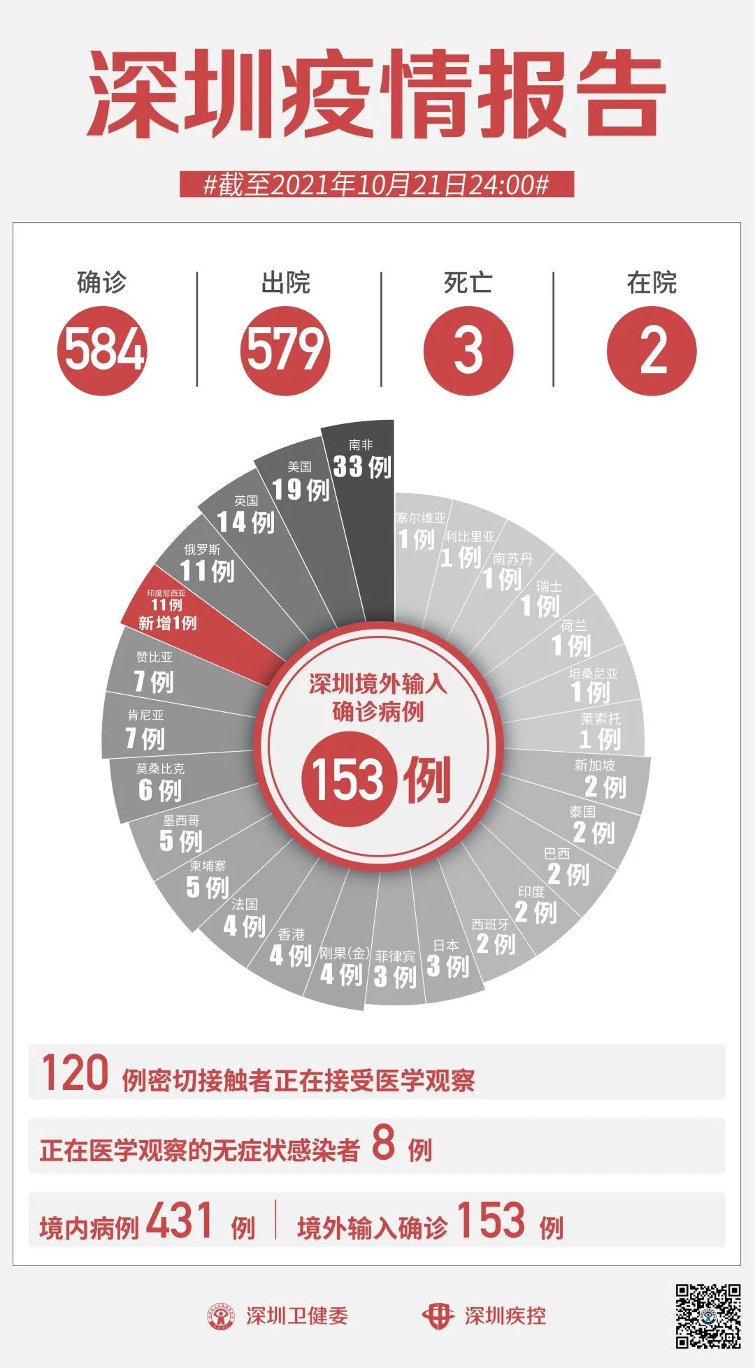 10月22日0-24时,深圳新增境外输入1例确诊病例和1例无症状感染者。