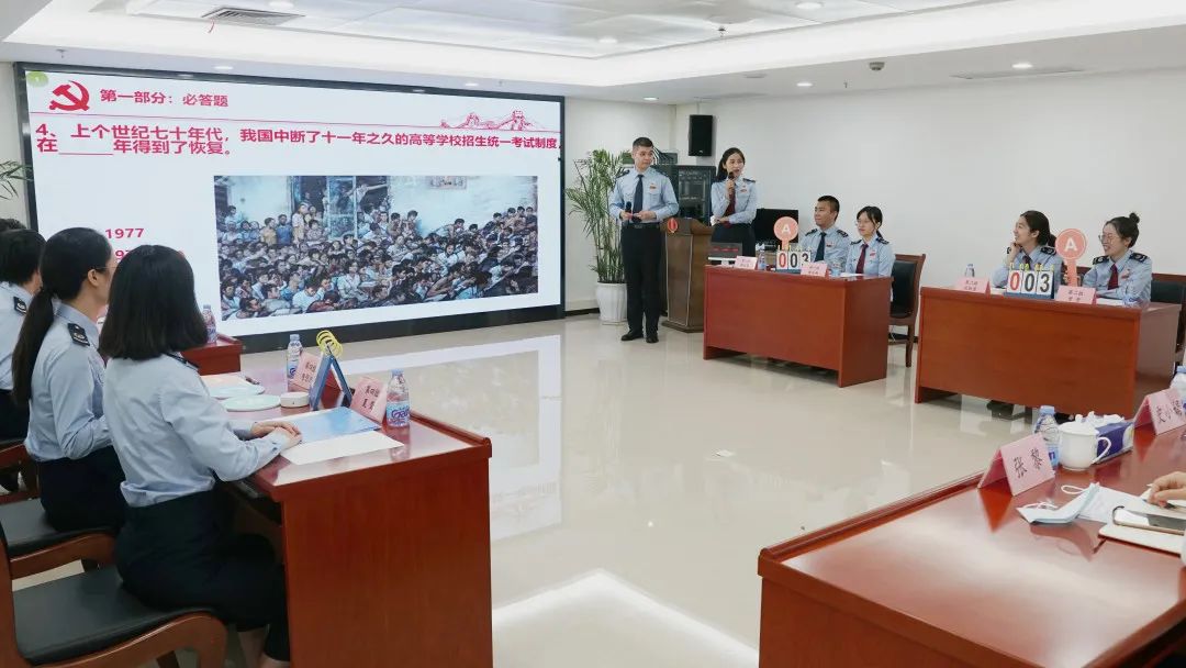 福田区税务局二级高级主办石裕慧分享了关于“诗词党史”“音乐党史”“美术党史”的思考,鼓励青年干部拓宽党史学习的深度和广度;党委委员、纪检组组长张黎点评活动三“可”——活动组织可圈可点,英雄先烈可歌可泣,青年干部可敬可爱;党委委员、副局长杨千里称赞本次党史知识竞赛精心组织、形式活泼、内容丰富,并提出要加强对建国后至改革开放前这一历史时期的学习。