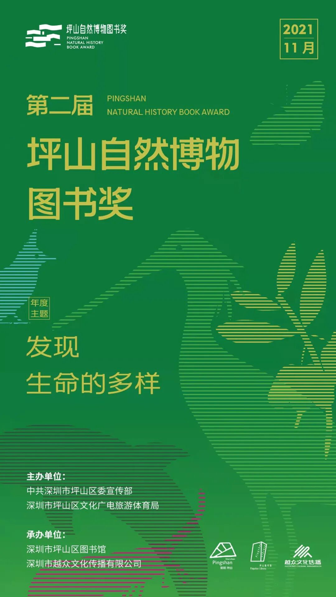 “坪山自然博物图书奖”是深圳市坪山区所举办的首个自然类图书奖项,也是国内出版领域具有独特定位的重要图书奖项。活动秉持绿色发展理念,旨在为读者评选出具有严谨科学态度、人文关爱情怀、推动现实变革、惠润百姓生活,同时也能体现社会责任和大众热点、在传递自然博物知识和生态关怀等方面具有卓著影响的自然图书,更深层次的意义在于为大众读者传播自然博物理念和认知,倡导日常发现自然、感知自然、热爱自然,培育自然博物素养,催生自然博物文化生活风尚,营造浓厚的全民自然博物氛围。