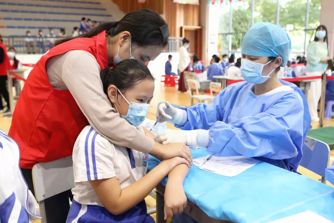 学校共1400多名6-11岁的学生参与了新冠疫苗接种,接种现场组织有序,师生家长积极配合,整体情况良好,无特殊情况发生。