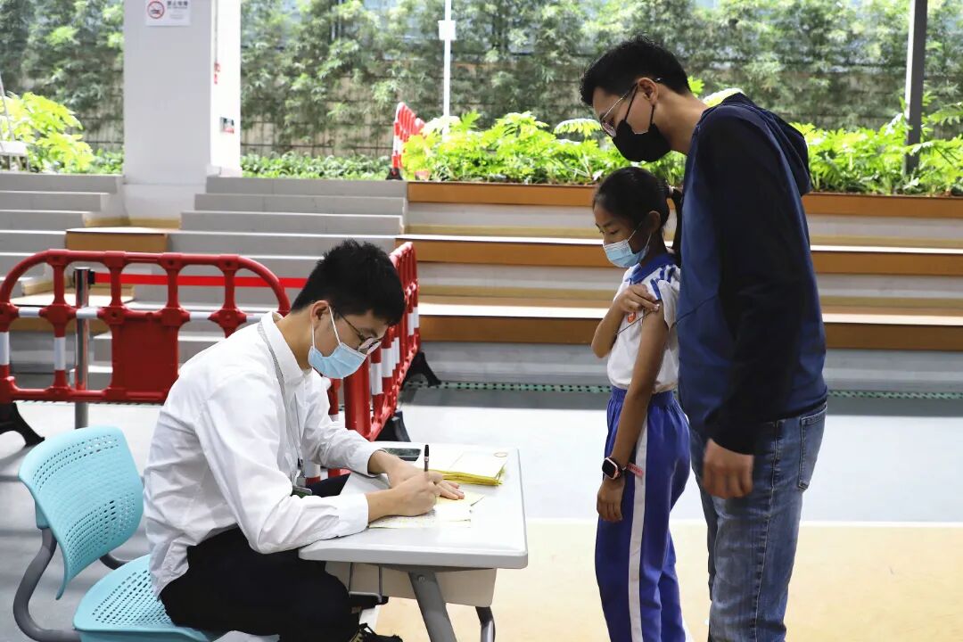 从早上8点半到下午4点半,在坪环社康医务人员和坪山人民医院医务人员的辛苦努力下,全校师生及家长密切配合,接种工作高效有序完成。