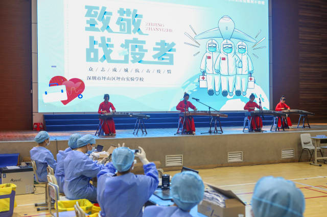 医生埋头“种苗”忙,坪山学子有温度。四天的接种工作结束后,学生特地为辛勤的医务工作者们献上古筝演奏《诗意民谣》和活力街舞《Show Me What You Got》,希望医生们在忙碌之余看到学子们的感恩之心。
