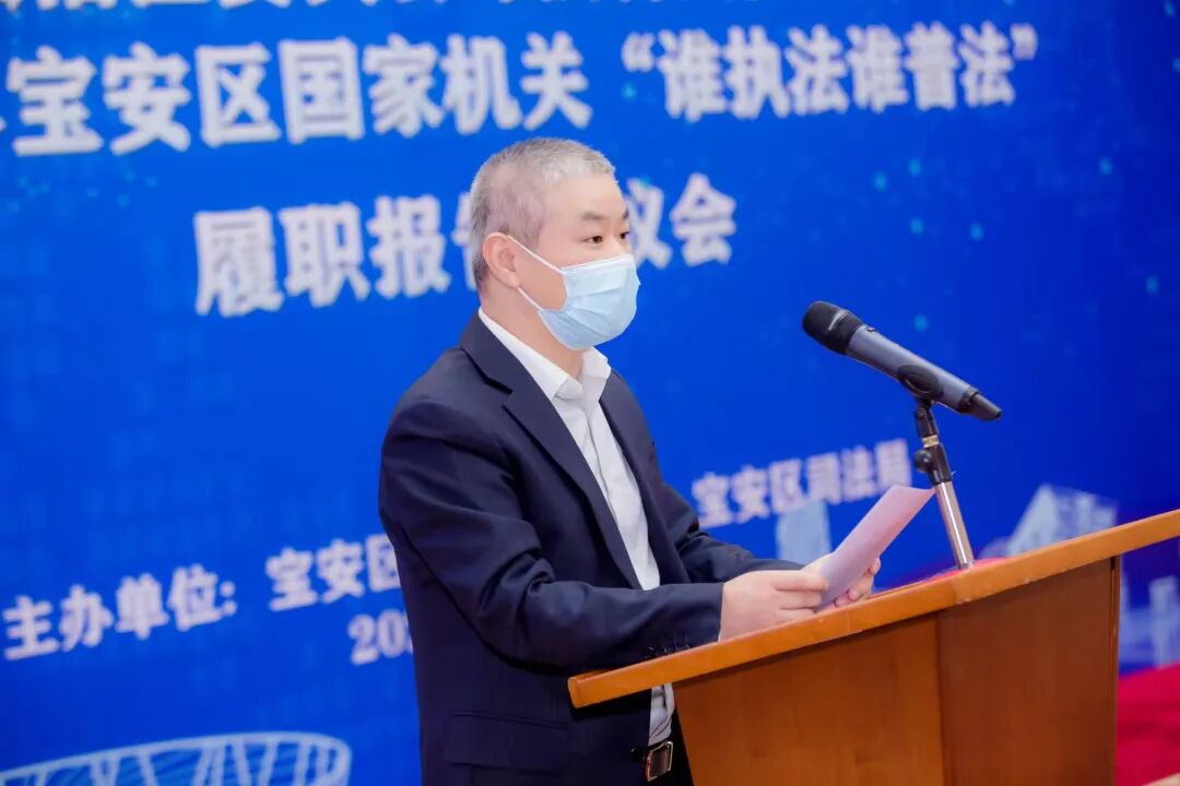 在此之后,会议进入第三项议程——2021年宝安区国家机关“谁执法谁普法”履职报告评议会。
