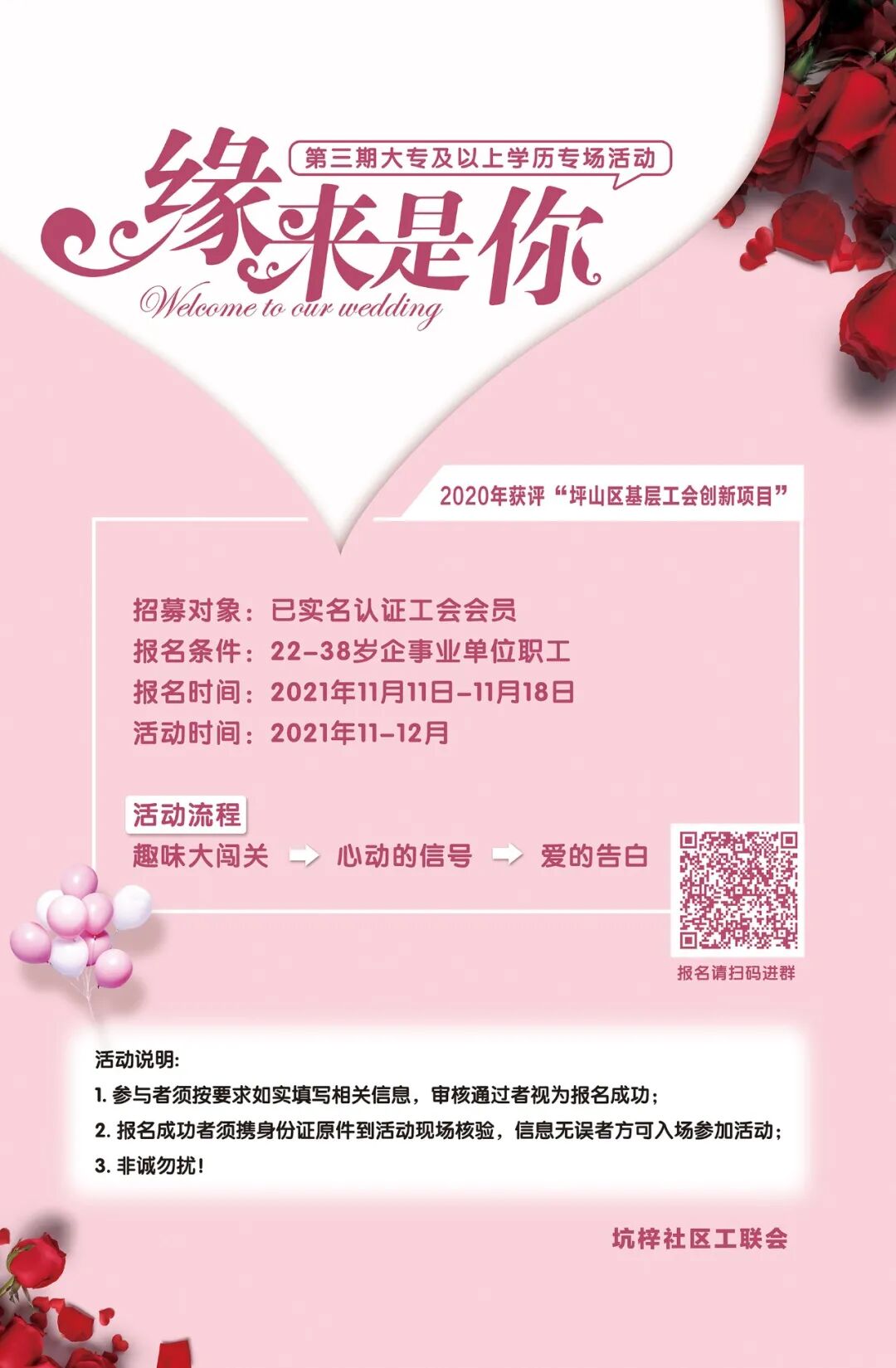 来,参加坑梓社区工会联合会举办的男女职工联谊活动吧!