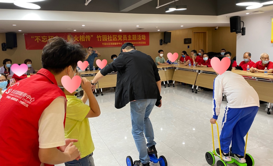 大家还体验了特殊儿童日常训练使用的平衡踏板车,这看似小小的踏板车,其中保持平衡的学问可大的很。第一次体验的党员和团员,都是在旁人的搀扶下,才巍巍颤颤地完成游戏,而孩子们却能在不借助外力的帮助下轻松地完成游戏。