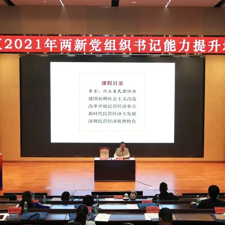 深圳市委党校二级教授袁晓江的《中国共产党支持民营经济发展的过程》,深圳市联创科技园、联创科技集团党委书记王海的《新时代背景下如何做好两新党建工作》,深圳市国瓷永丰源股份有限公司党支部书记李志安的《党建带群建 促进企业发展》,深圳市社科院原院长助理、社科类社会组织联合党委第一书记吴奕新的《深圳社会组织党建工作的实践与思考》等专题授课,赢得了阵阵掌声,得到了与会人员的一致认可。