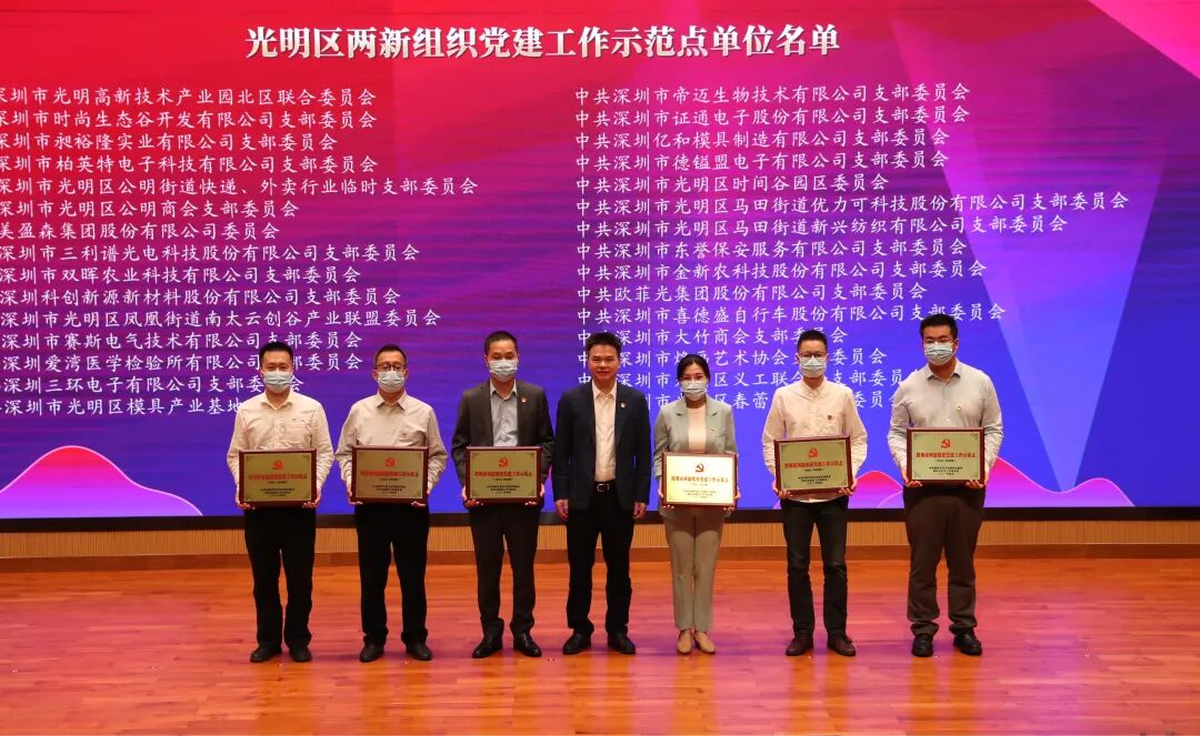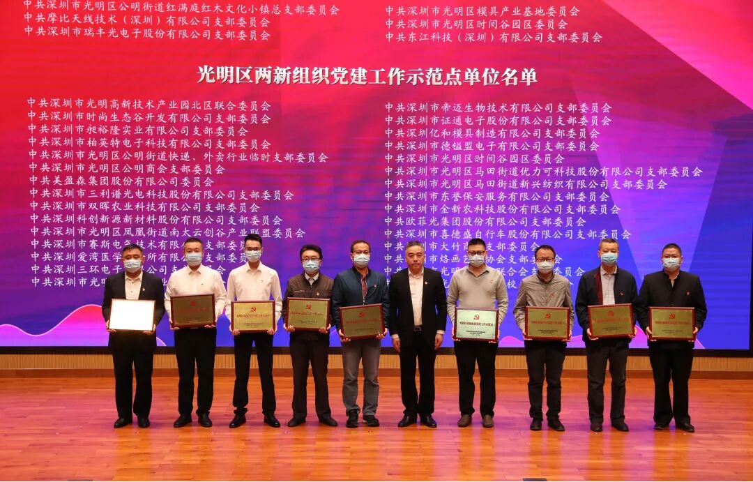 活动还宣读了《关于表彰市、区两新党建工作示范点的通报》。2021年,光明区两新党组织围绕中心、服务大局,聚焦重点领域,突出特色亮点,不断创新工作机制,持续强化服务意识,涌现了一批有代表性的两新党组织。经市、区两新组织党(工)委综合评定,中共深圳市光明区公明街道红满庭红木文化小镇总支部委员会等6个党组织被评为“深圳市两新组织党建工作示范点”,中共深圳市光明高新技术产业园北区联合委员会等30个党组织被评为“光明区两新党建工作示范点”。