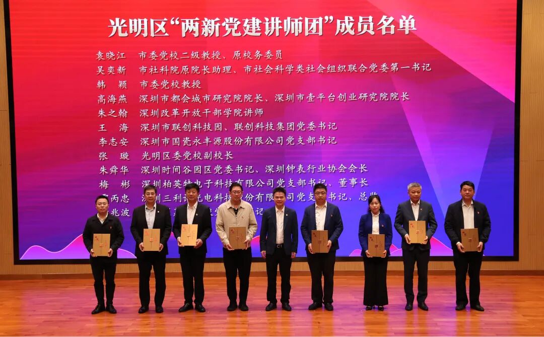 活动宣读了《关于成立光明区两新党建讲师团的公告》。据悉,为进一步加强两新党组织建设,推动提升两新组织发展动能,光明区成立“两新党建讲师团”。12名理论深厚、功底扎实、经验丰富讲师团成员,从不同角度剖析如何做好新时代两新党建工作,为加快建设世界一流科学城和深圳北部中心贡献两新力量。