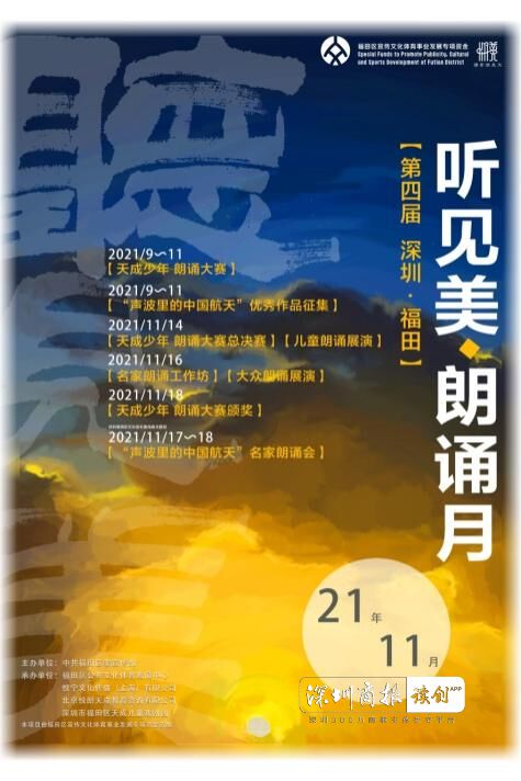 阔别一年后,第四届深圳福田“听见美·朗诵月”系列活动将于11月如约回归。作为鹏城一年一度颇受期待的重磅文化活动,本次朗诵月将延续“名家分享、大众参与、全民互动”的原则,由著名表演艺术家濮存昕领衔,以高品位审美滋养城市,以高品格精神感动读者,继续为大家带来名家朗诵、名家讲座、工作坊培训、少儿朗诵大赛、全民互动等精彩纷呈的文化活动。
