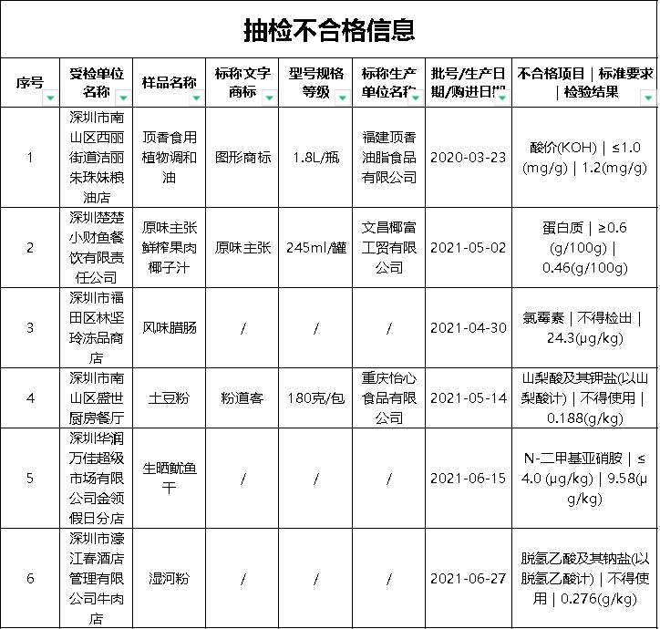 通报详见深圳市市场监督管理局2021年食品安全抽样检验情况通报(第三十一期)http://amr.sz.gov.cn/xxgk/qt/ztlm/spaq/spaqjg/content/post_9361714.html