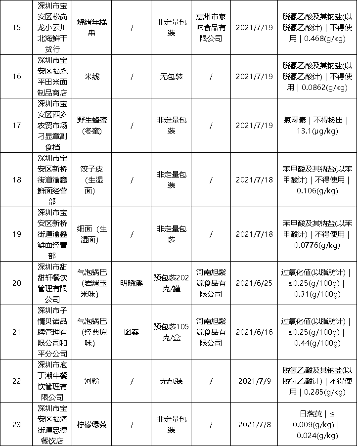 (原标题《名单曝光!深圳公布63批次不合格食品,部分来自大牌商超》)