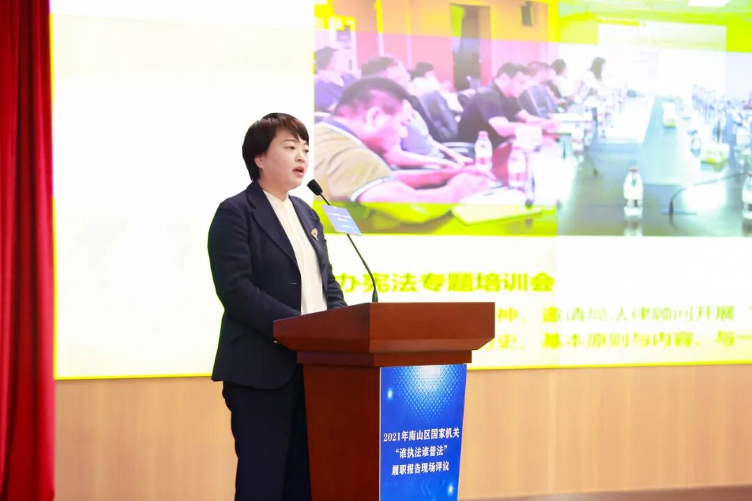 据了解,今年南山区是开展履职报告评议活动的第三年。回眼望去,每一场评议活动都缤彩纷呈!2019年,对南山公安分局、区法院、区水务局、区城管和综合执法局4家单位进行评议,2020年对区教育局、区人力资源局、区住房建设局、区应急管理局、区政务服务数据管理局、区规划土地监察局6家单位进行评议,以评议促“谁执法谁普法”责任制落实,以部门普法带动全民普法,全力推动全民普法大格局的形成。