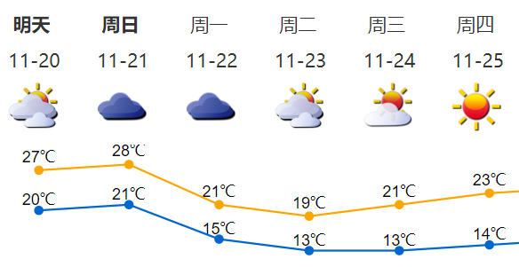 再画一下重点:周末还没开始降温。大家周一上班上学前别忘了添衣,别只要风度忘了温度。