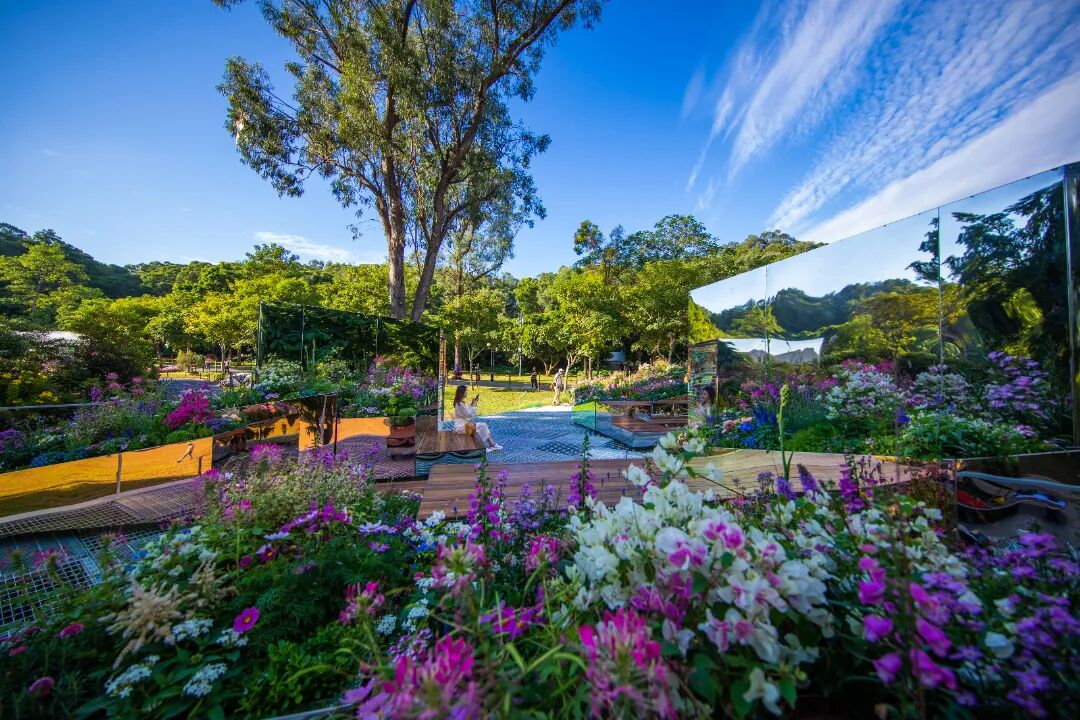 充满科技感的反射镜面,遇上色彩各异的花草,营造出了一个光怪陆离的“花花世界”,里面究竟有啥奥秘?一起去一探究竟!