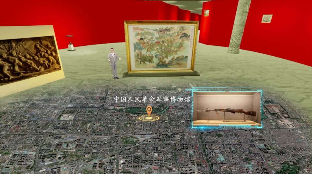 几组持械训练的战士在画面的右下侧形成了一个半包围结构。战士们手中的武器一致朝向右侧,给人严阵以待的感觉,同时隐喻着解放军是抵御外敌的牢固防线,是保卫祖国的钢铁长城。