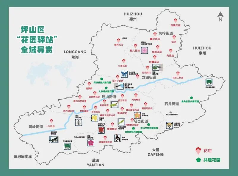 同时,紧贴创意热度,开展“城中村最美‘花园小院’营造”启动计划暨“种子漂流计划”,开展“37℃花园小院美学·立美之心”入户庭院园艺设计体验式培训、“植物寻宝”创意学堂等系列活动,结合坪山辖区现有5个社区共建花园、30余家花店,以及规划中的15组全域自然博物研习步道系统等为素材,推出《坪山区“花园驿站”全域导赏》。