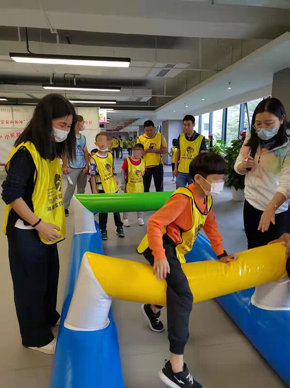 当天活动也严格按照疫情防控相关要求进行,每一位参与者提前出具粤康码、行程卡、体温测量,同时也将活动对象分组在不同的主题房间错开参与活动体验。活动现场在工作人员和志愿者的引导下,“十拿九稳”巨型乒乓球在队员的合作下,一下子抬了起来,大家呼喊着号子往前走;在超级障碍赛中,队员排队跨越充气跨栏、下蹲穿越钻网通道、翻越充气墙体,最后“鱼越龙门”的时候,几乎每个儿童都抬起双臂比个胜利手势,家长也是乐的合不拢嘴巴。同时,当天还有“疯狂毛毛虫”“全速前进”“迷你高尔夫”等运动项目,孩子和家长们其乐融融,现场笑声不断、口号声不停,参与的儿童和家长脸上汗水和笑容交织,成了一片欢乐的海洋。
