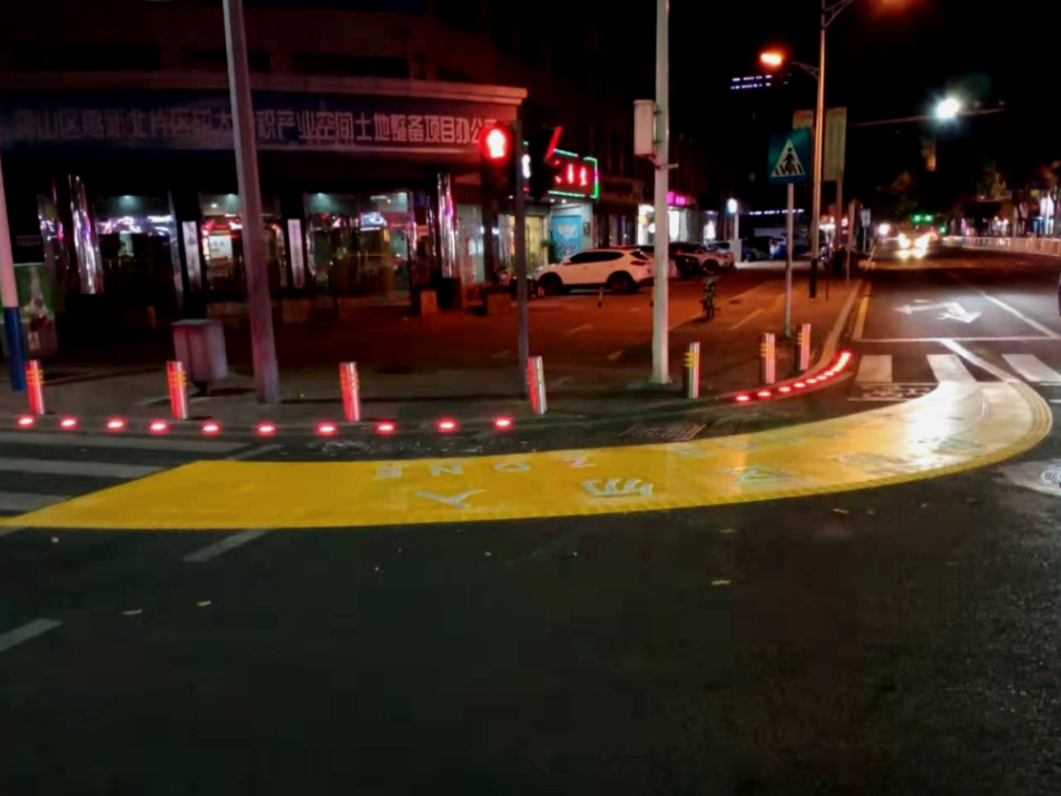 试点施划右转弯盲区警示带