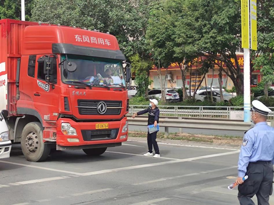 为全方位普及“右转必停”和“斑马线停车礼让”交通安全新规,坪山交警联合各街道通过发放提示贴进企业和上路口宣传的形式,全力推进大型车辆右转弯停车礼让工作,让每一位大型车辆驾驶员了解新规,提升行车安全意识。