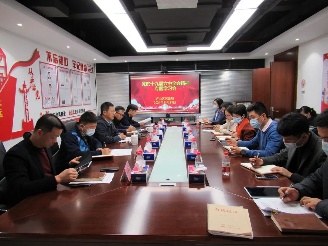 近日,坪山区民政局召开党组(扩大)会议,专题传达学习贯彻党的十九届六中全会精神,研究部署区民政系统贯彻落实意见。
