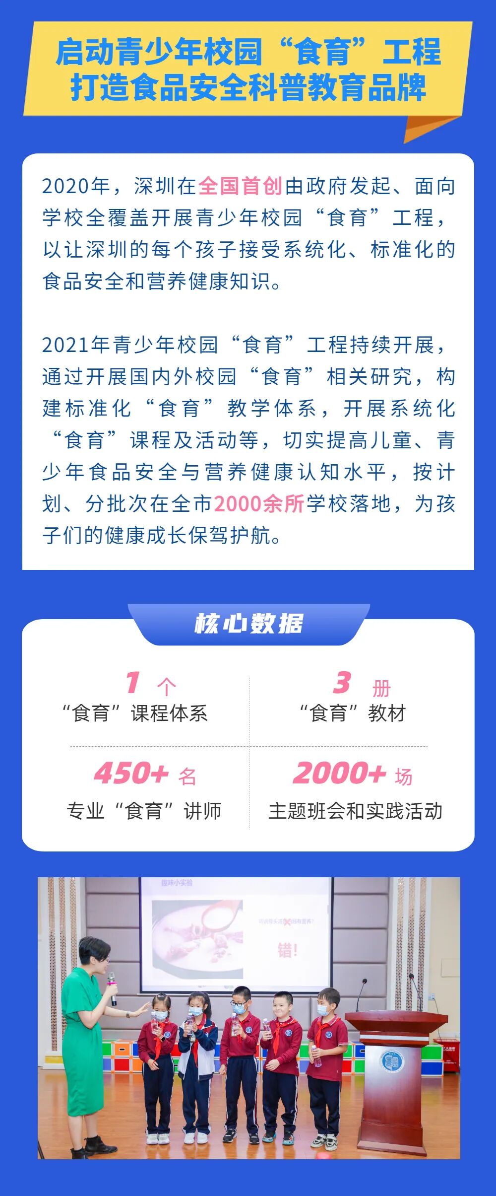 为创建国家食品安全示范城市,深圳创新实施食品安全战略,采取了一系列的民生保障措施,在护航市民食品安全方面走出了深圳特色!包括高标准城市食品品牌,城市志愿服务品牌,食品安全便民服务品牌,食品安全科普教育品牌,建设领域食品安全保障示范,疫情防控风险管控示范特色经验……