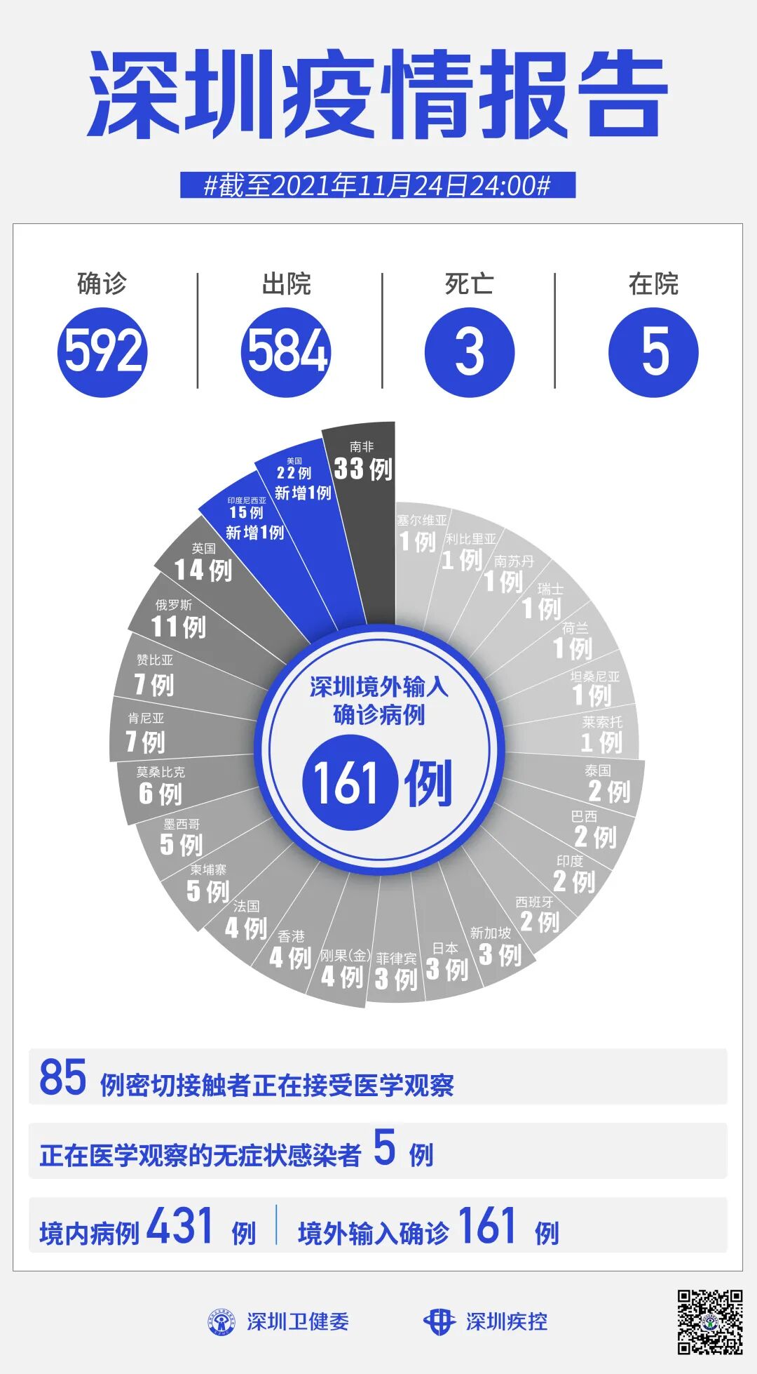 11月24日0-24时,深圳新增境外输入2例确诊病例。