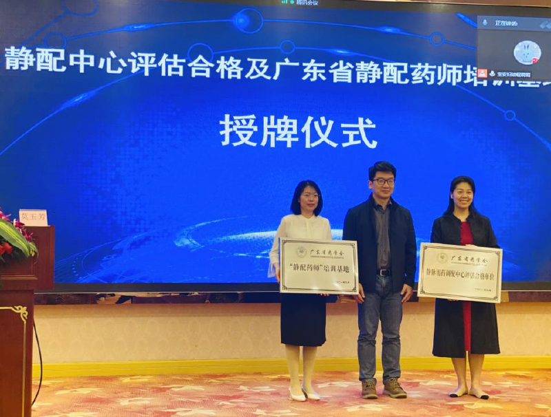 广东省静配专业评估专家莫玉芳宣读了评估意见书,并宣布了评估合格及成为“静配药师”培训基地的结果,由广东省静配专委会主委杨威授予宝安区妇幼保健院静配中心评估合格证和广东省“静配药师”培训基地称号。