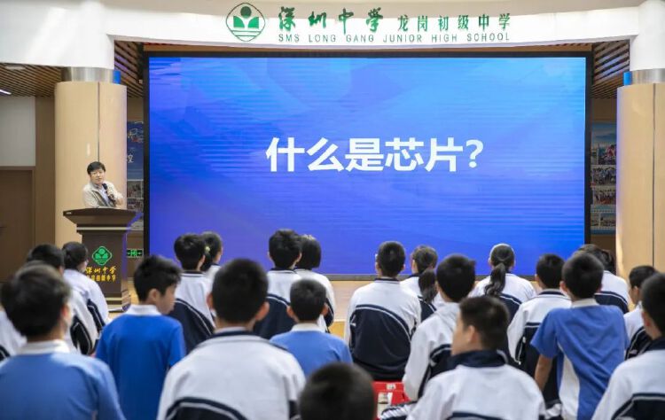 本期演讲嘉宾刘鹏,是华为海思高级工程师,同时也是该校初一10班刘春悦同学父亲。刘鹏老师以一个演示芯片制作过程的动画作为预热视频,从硅锭制作到切割封装,同学们目睹了芯片从无到有的各个阶段,燃起了强烈的求知欲。