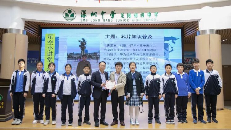 在刘鹏老师的分享后,深圳中学龙岗学校校长姚亮为他颁发了荣誉证书,感谢他的精彩开讲,带大家走进“芯片”世界。据了解, “星空小讲堂”是深圳中学龙岗学校的特色课堂,无论是在校学生、毕业生、教师或者家长都可以走上这个舞台成为主讲嘉宾,为在校师生分享特色主题演讲或者话题分享。接下来,深圳中学龙岗学校将继续开展“星空小课堂”,邀请更多有想法有故事的主讲嘉宾,为在校学生打开更多新视野。