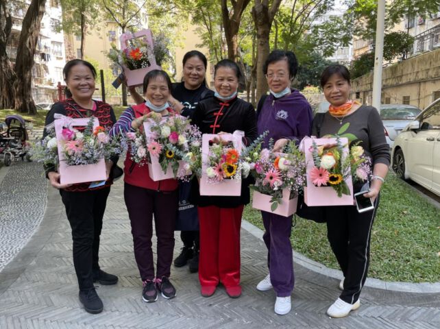 现场参加活动的社区居民表示,以前从来没有插过花,也没有这样的机会,今天参加了这个活动,不仅自己学会了插花,而且能和老邻居们在一起学习,这是多么美的一件事啊!