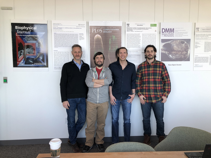 Xenobots 3.0的设计团队(左起):乔西·邦加德,佛蒙特大学;迈克尔·莱辛,塔夫茨大学和哈佛大学Wyss研究所;道格拉斯•布莱克斯顿,塔夫茨大学;山姆·克雷格曼,塔夫茨大学和哈佛大学Wyss研究所。图片来源:塔夫茨大学