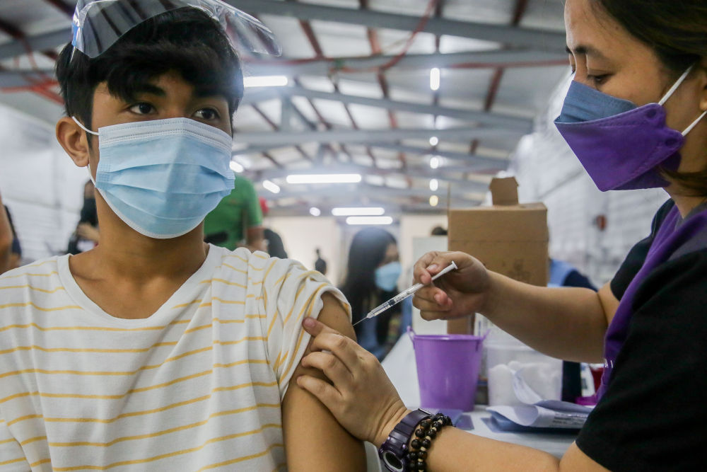 11月29日,民众在菲律宾马里基纳的一个体育中心接种新冠疫苗。(新华社发,乌马利摄)