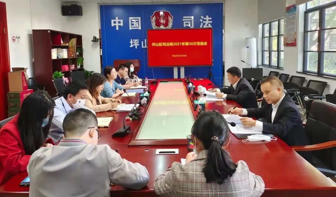 近日,坪山区司法局召开党组会,传达学习党的十九届六中全会精神,研究贯彻落实意见。