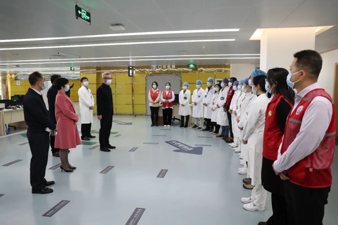杨军一行首先来到医院新冠肺炎疫苗接种现场,现场查看了疫苗接种点场地设置、接种流程和人员组织情况,听取了医院疫苗接种工作的汇报,并对接种点从事疫苗接种工作的医护人员和志愿者进行了慰问。杨军指出,当前疫情形势依然严峻,接种疫苗是构筑免疫屏障的有效方式,坪山区正在大力推进新冠肺炎疫苗第三针加强针接种工作,希望医院医护人员和志愿者们再接再厉,在充分做好自身防护的同时,有序推进疫苗接种工作,齐心协力构筑免疫屏障,切实保障市民群众健康安全。