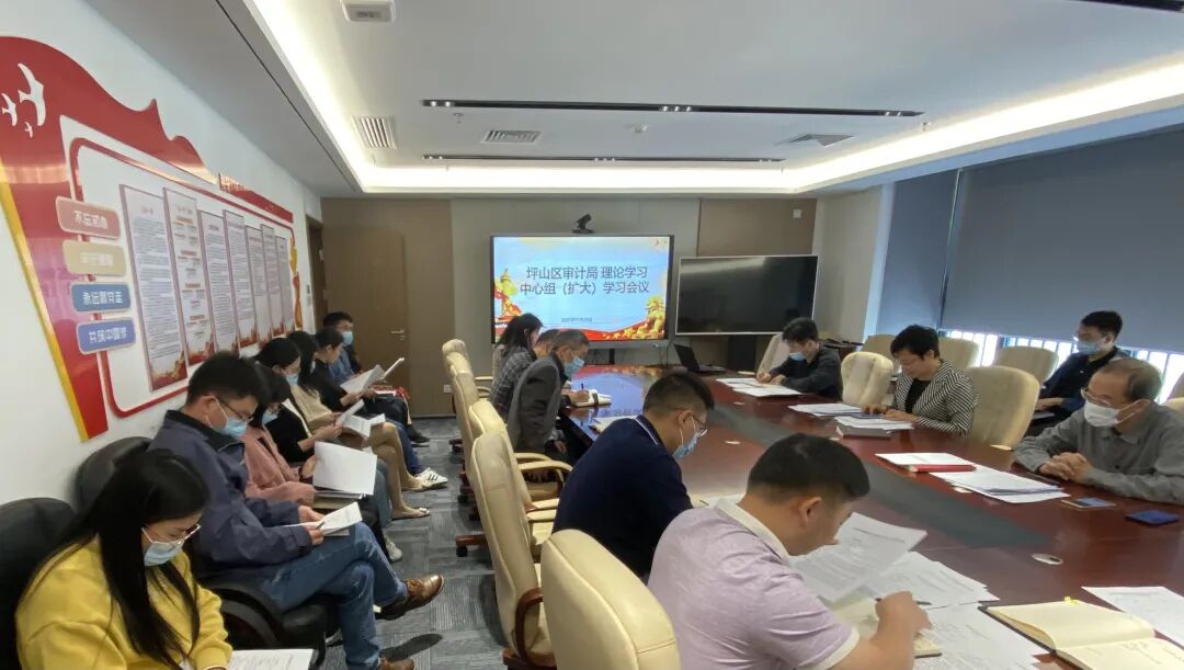 近日,坪山区审计局召开党组理论学习中心组(扩大)学习会,深入学习贯彻党的十九届六中全会精神。