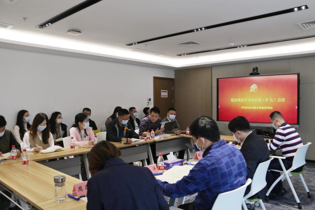 近日,坪山区政务服务数据管理局召开党组理论中心组(扩大)学习会议,学习贯彻十九届六中全会精神。