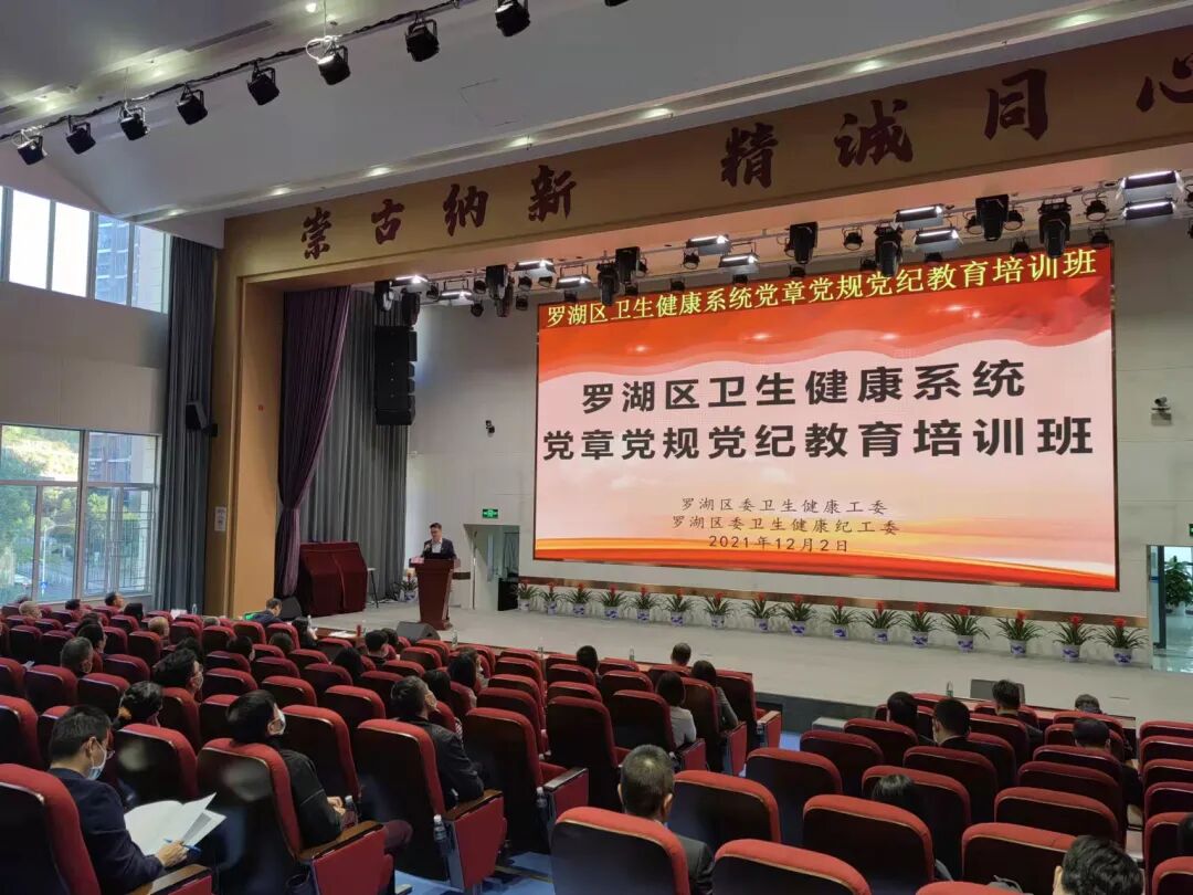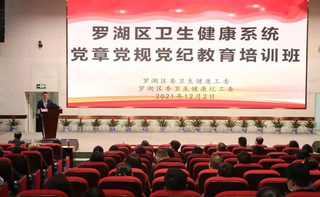 12月2日下午,罗湖区委卫生健康工委在罗湖区中医院6楼礼堂举办罗湖区卫生健康系统2021年党章党规党纪教育培训班,深入学习贯彻十九届六中全会和市、区领导干部党章党规党纪教育培训班精神,以案为鉴开展警示教育,引导卫健系统党员干部增强“四个意识”、坚定“四个自信”、做到“两个维护”,永葆忠诚干净担当的政治品格,奋力开创罗湖卫生健康系统高质量发展新局面。