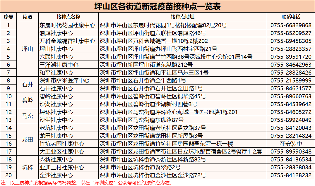 @坪山er新冠疫苗加强针在坪山哪里可以打呢?小伙伴看过来!
