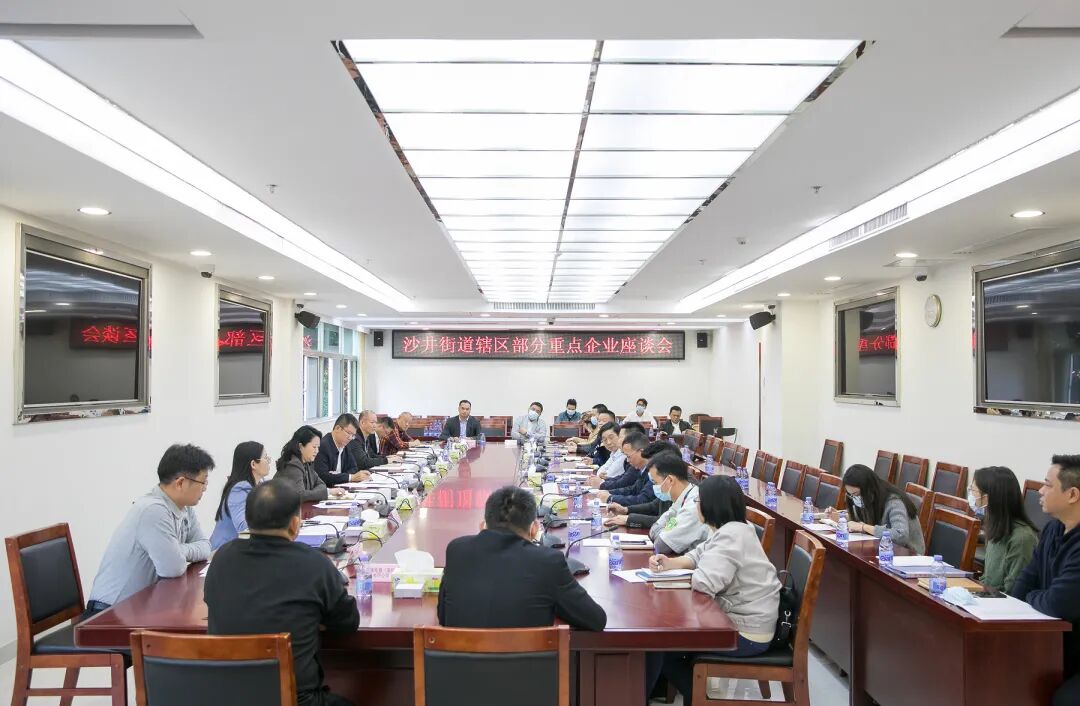 图为沙井街道召开辖区部分重点企业座谈会,了解企业在生产经营过程中存在的困难和问题,为优化营商环境提供有力保障