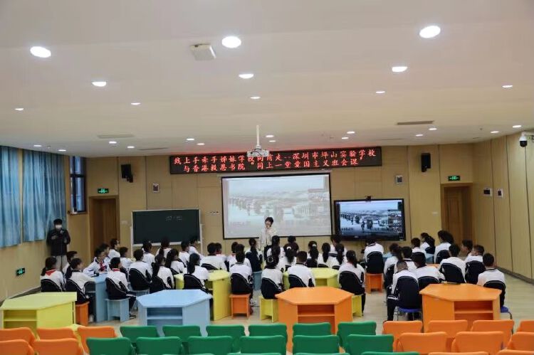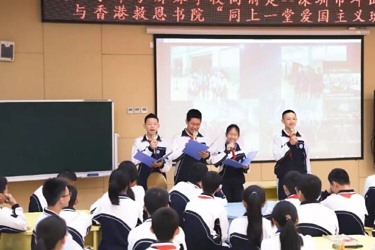 12月8日,深圳市坪山区坪山实验学校与香港救恩书院,以“线上手牵手,姊妹学校向前走”为主题,深港两地师生“云端相聚”同上爱国主义班会课。这堂别开生面的班会课,诗词竞赛引入,两地同频共振。