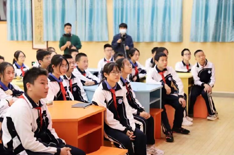 紧接着,陈老师妙用诗词竞赛的形式活跃了课堂气氛,两地学生忘记了地理距离的隔阂,争先恐后选题抢答,“苟利国家生死以,岂因祸福趋避之”“先天下之忧而忧,后天下之乐而乐”“人生自古谁无死?留取丹心照汗青”……一首首耳熟能详的诗词呈现在学生面前,自此,两地学子同频回望古今中华青年奋斗历史,探寻中华文化脉络,班会课正式开始。
