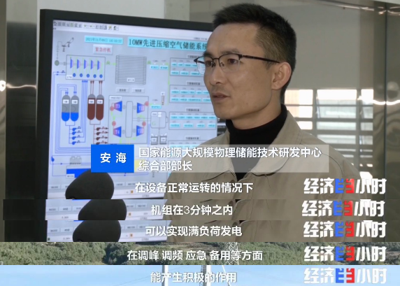 目前,这套10兆瓦先进压缩空气储能系统,一天能发40000度电,相当于3000户普通家庭一天的用电量。