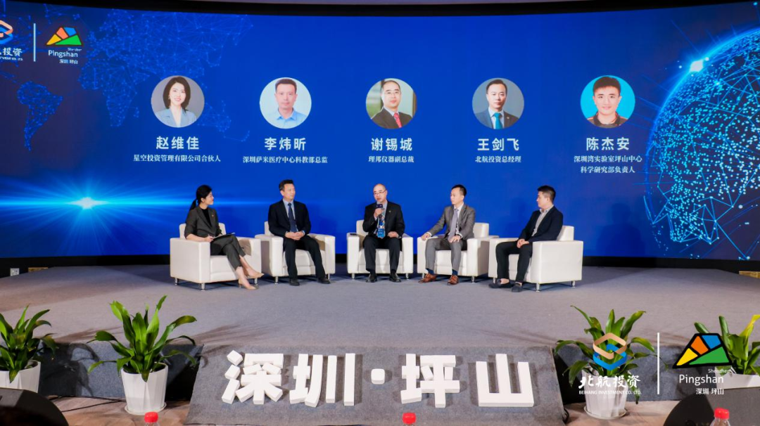 现场理邦仪器副总裁谢锡城、深圳湾实验室坪山中心科学研究部负责人陈杰安、北航投资有限公司总经理王剑飞、深圳萨米医疗中心科教部总监李炜昕围绕“医工交叉产业创新发展”展开了热烈讨论。