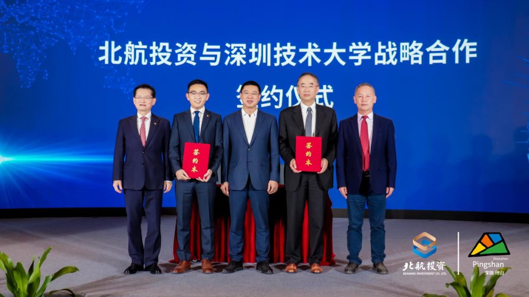 现场,北航投资还与深圳技术大学签订了战略合作协议。据悉,双方将在坪山区的支持下,在人才培养、实践教学、产学研融合等方面进行深度合作,还将共建深圳技术大学校友创新创业基地,合作举办创新赛事。