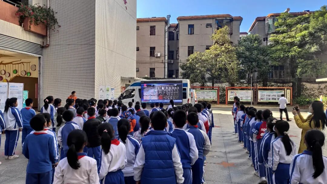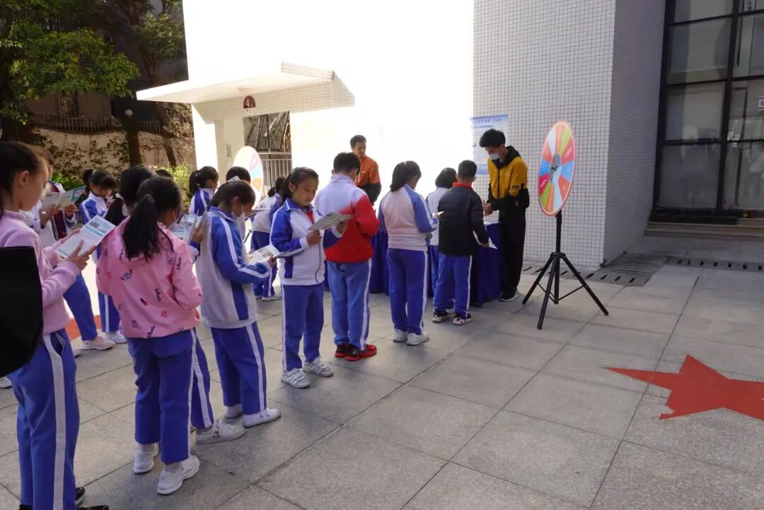 活动包括地面坍塌知识展板展示、宣传短片播放、宣传资料发放、转盘游戏互动问答等多元模块,主要围绕地面坍塌的“概念”“特点”“成因”“前兆”“防治手段”等知识点向坪山区中心小学师生们进行宣传科普。