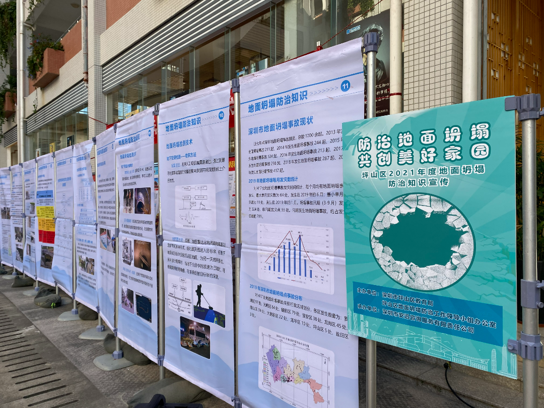 此外,坪山区还在龙田、坑梓、石井、坪山、马峦、碧岭6个街道全面开展“地面坍塌防治知识宣传”活动,广泛加强人民群众对地面坍塌防治知识的认知,增强辖区群众防灾避险意识,提高逃生自救能力与避险能力。