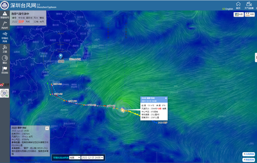 今年第22号台风“雷伊”今天14时位于我市东南方约2388公里的西北太平洋洋面上,预计未来向西偏北方向移动,将于18日凌晨进入南海东南部海面,20日趋向我国西沙群岛以南海面。
