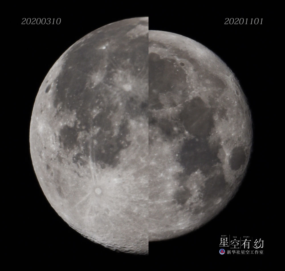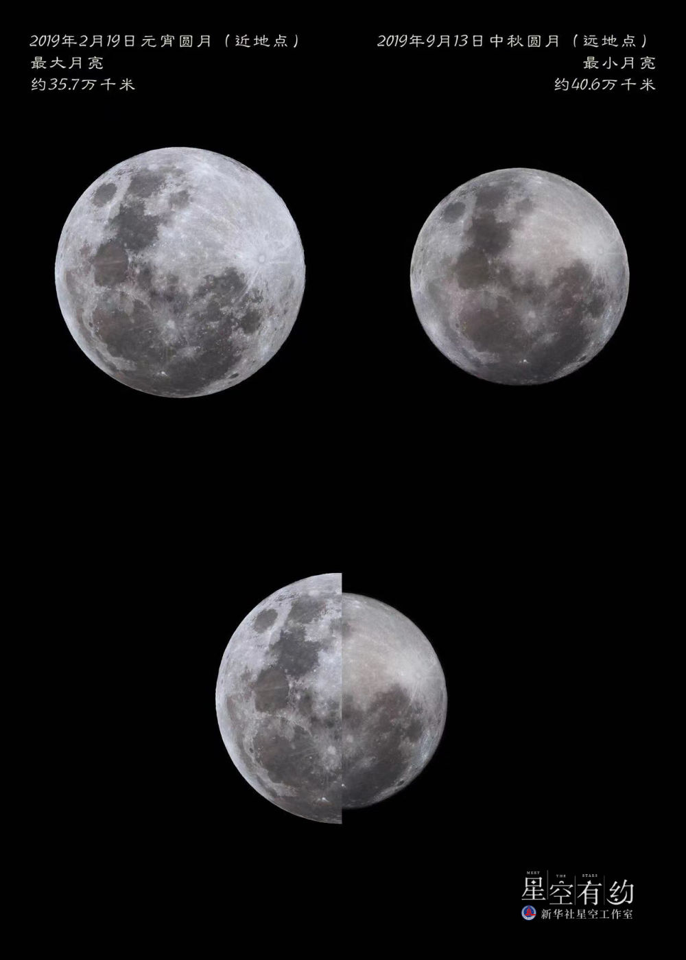 天津市南开中学星尘天文社社员张诣扬拍制的2020年“最大满月”和“最小满月”对比图。(本人供图)