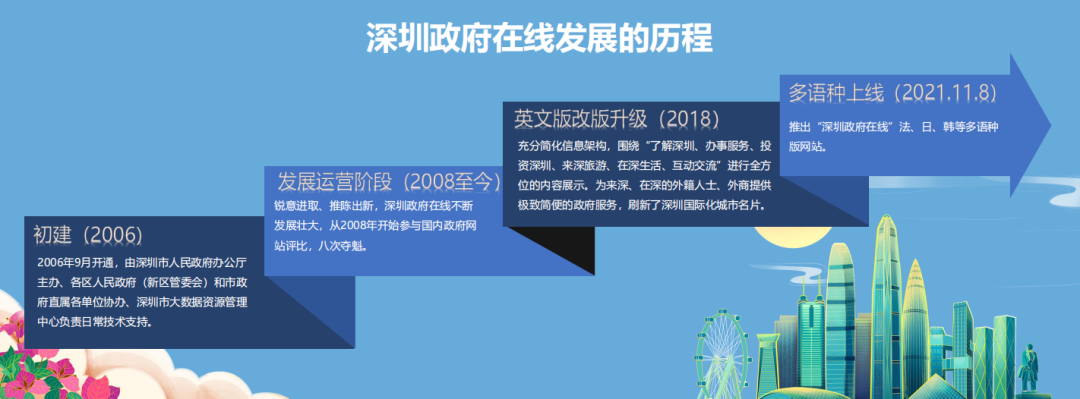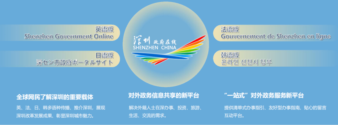 继英文版网站后,在深圳市政府办公厅及市政府外事办公室积极支持下,深圳市政务服务数据管理局精心谋划,推动完成“深圳政府在线”法、日、韩等多语种版网站建设。多语种版网站以丰富的信息资讯、鲜明的中国视角、广阔的世界眼光讲好深圳故事、中国故事,传播好中国声音。